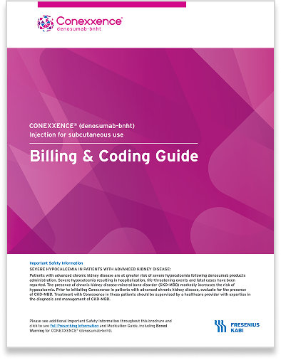 Patients with advanced chronic kidney disease are at greater risk of severe hypocalcemia following denosumab products administration. Severe hypocalcemia resulting in hospitalization, life-threatening events and fatal cases have been reported. The presence of chronic kidney disease-mineral bone disorder (CKD-MBD) markedly increases the risk of hypocalcemia. Prior to initiating Conexxence in patients with advanced chronic kidney disease, evaluate for the presence of CKD-MBD. Treatment with Conexxence in these patients should be supervised by a healthcare provider with expertise in the diagnosis and management of CKD-MBD.